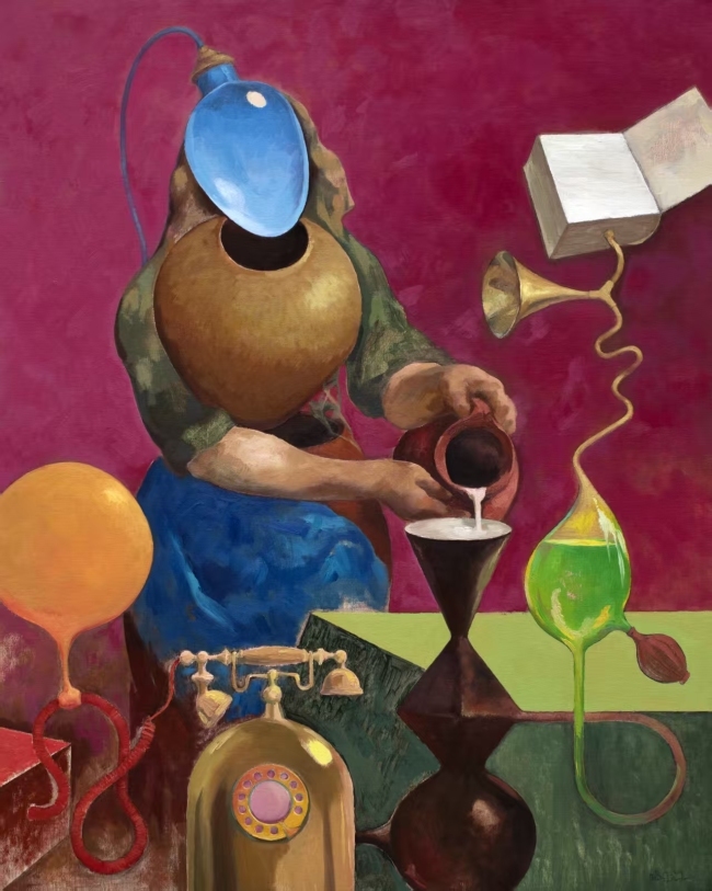 而当个人体验与时间海潮相遇,石磊的绘画便自然地成为了时间的镜像。他身处的时间,是一个充满转移与吵闹的时间,科技的起飞、社会的转型、价钱观的碰撞,无时无刻不正在重塑着人们的糊口图景。石磊以其伶俐的洞察力,搜捕着时间的脉动,将社会各个期间的风貌与个人正在时间中的糊口形态,转化为画面中的视觉说话。他的作品,像是一部无声却鲜活的时间影像志,记实着摩登社会的斑驳陆离,也揭示着个人正在时间裹挟下的挣扎与求索。他深远时间的肌理,发掘那些被忽略的角落、被遮蔽的心境,用艺术的方法,为时间留下一份怪异的精神注脚。