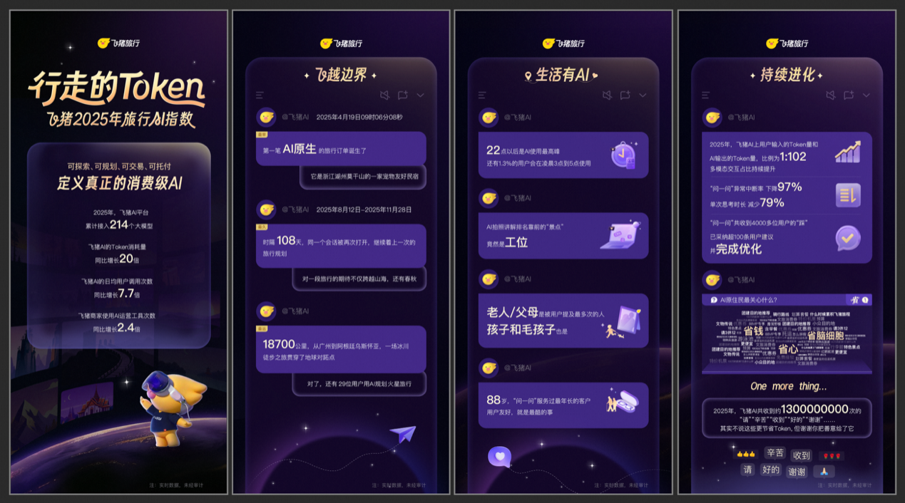 2025年,飞猪正在平台供应链运营、客服任事、商家用具、平台办理等众个方面接连精进AI材干。飞猪数据显示,平台商家挪用AI运营用具的次数同比增进2.4倍,个中AI发品助手最受接待,运用次数同比增进13倍,AI图片加强、AI商品格检等也是商家较为青睐的功用。行动观光